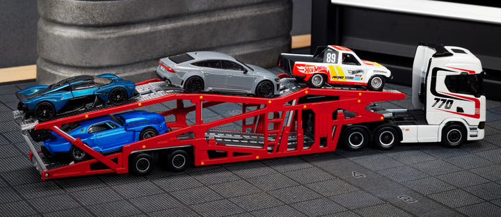 - Features: Detachable two-level trailer, can carry six 1:64 scale vehicles