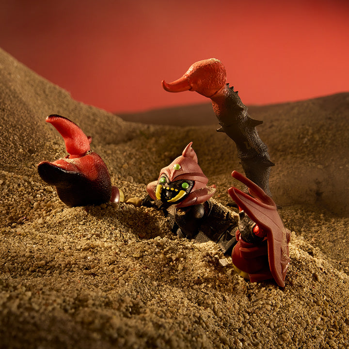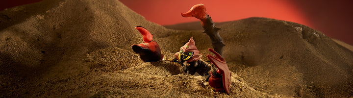 In his fear-inspiring debut in the Masters of the Universe world, Sting-Or emerges from the shadows to become a fully-fledged threat to Etheria. The first male scorpion character in the MOTU lineup, Sting-Or literally strikes fright into the hearts of his enemies with a massive, posable scorpion tail and claws, plus interchangeable hand attachments that make him more dangerous than ever.